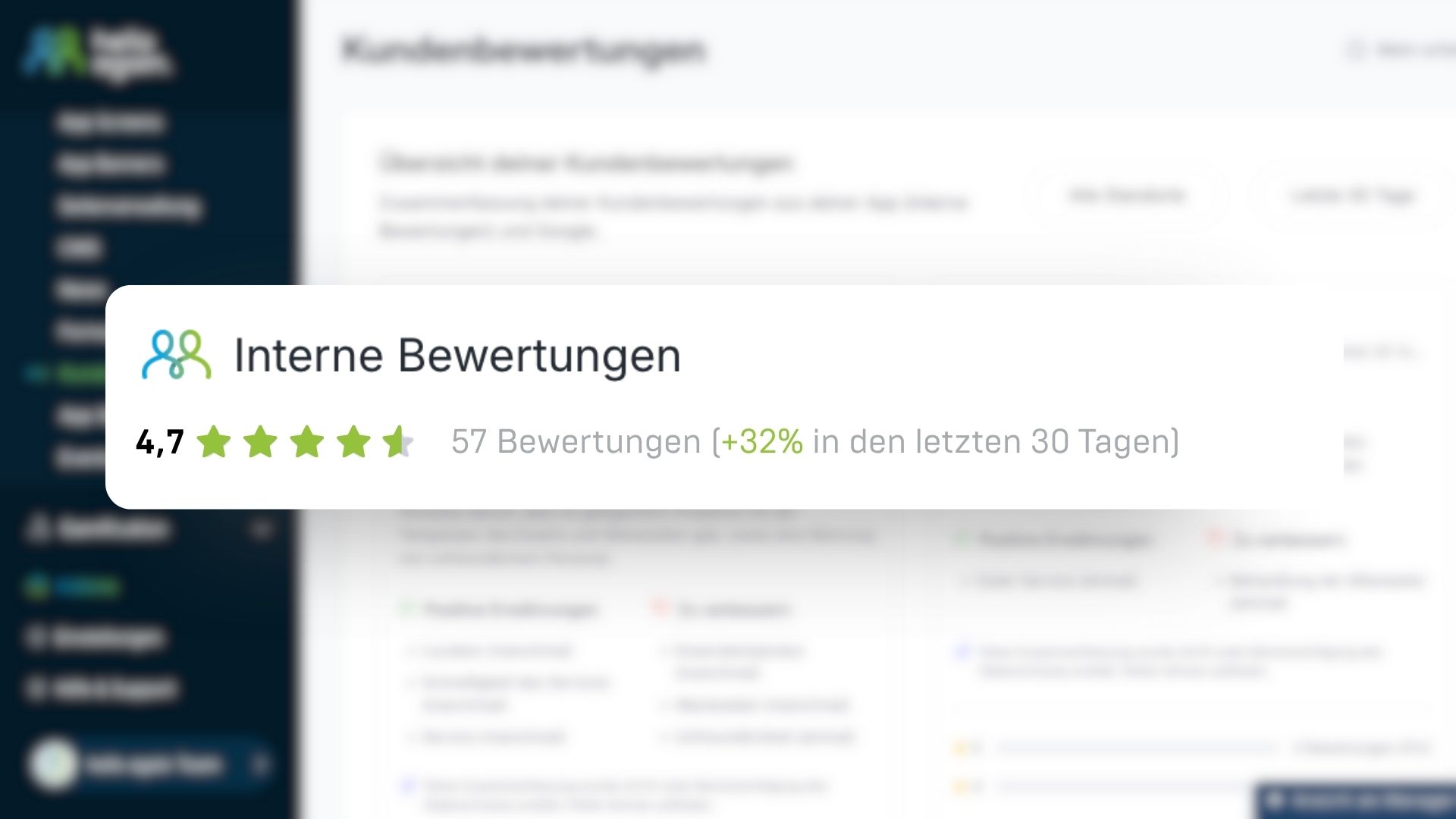 Frag genau dann nach, wenn der Eindruck noch frisch ist! Über die Funktion „interne Bewertungen“ geben deine Kund:innen schnelles Feedback und du bekommst sofort ehrliche Einblicke. Mit ein paar Treuepunkten als Dankeschön steigt die Beteiligung ganz automatisch.