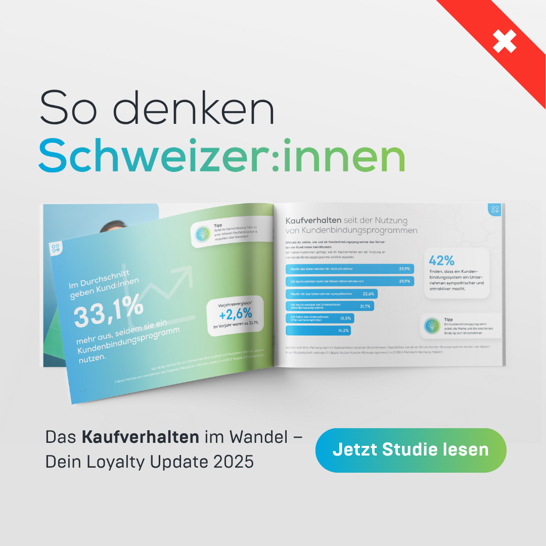 Lade jetzt den Loyalty Report Schweiz 2025 herunter und gewinne wertvolle Einblicke, die dein Unternehmen zum Erfolg führen.